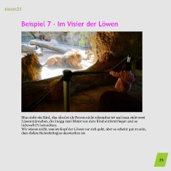 Löwenmännchen, die knapp zwei Meter von dem Kind entfernt liegen und es
